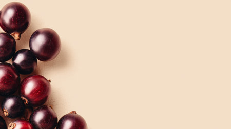 A stunning arrangement of fresh blackcurrants and redcurrants scattered on a soft beige background, showcasing their rich colors and interesting shadows. Perfect for food photography.