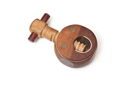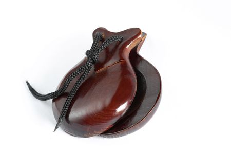 a pair of wooden castanets isolated over a white background
