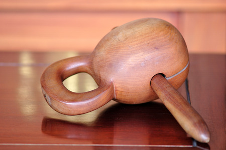 Close up view of wooden castanets no people