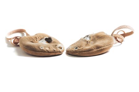 Shoes for rhythmic gymnastics very worn Active use, a lot of training Isolated on white background