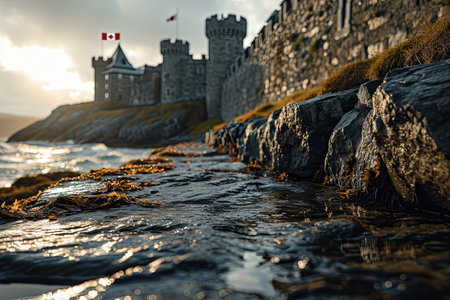 Medieval castle associated with the Knights Templar, shrouded in an aura of mystery and history. Generative Ai