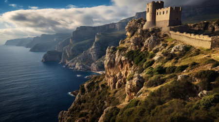 Majestic Medieval Castle in Majorca with stunning views, generative AI