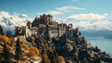 Ancient medieval castle proudly stands on a hill, Construction of a medieval fortified castle, Ai generated