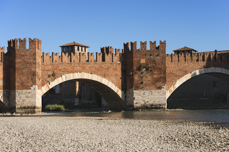 View of the Castel Vecchio Bridge or Scaliger Bridge of the castle Castelvecchio in Verona, northern Italy.