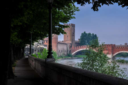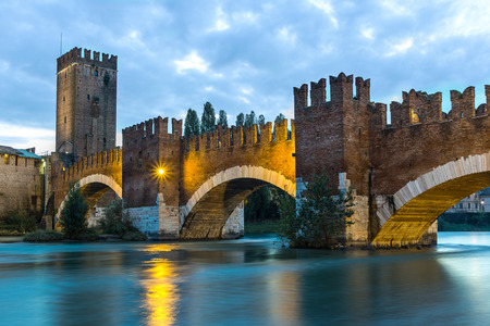 Castle Vecchio at summer night in Verona, Italy. Beautiful travel photo of Italy.