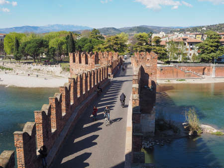 VERONA, ITALY - JUNE 3: Ponte Scaligero in Verona, Italy on June 3, 2015. The bridge was built in the 14th century. Foto taken on Ponte Scaligero.