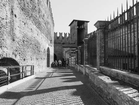 VERONA, ITALY - CIRCA MARCH 2019: Castelvecchio (meaning Old Castle) in black and white