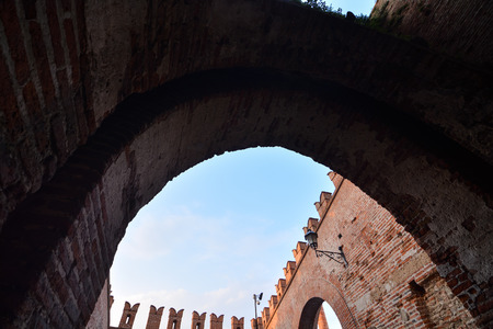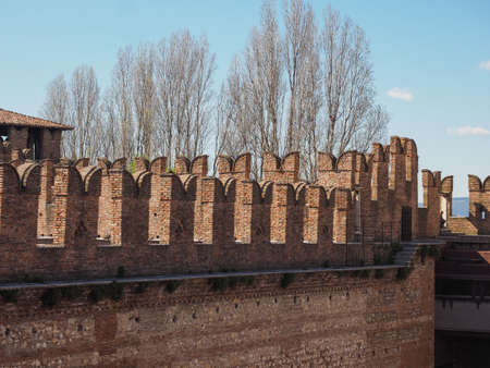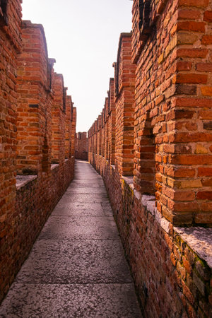 Medieval walls of Castelvecchio Castle in Verona Italy