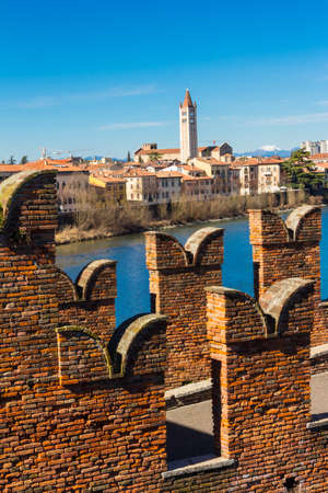 Verona, Italy - December 6, 2013: View of the Catelvecchio castle on the Adige river