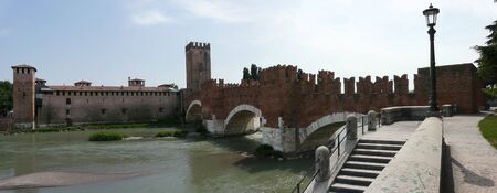 The Ponte Scaligero 14th century leads over the Adige River in Verona, Italy