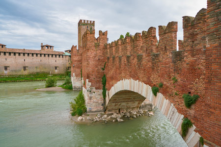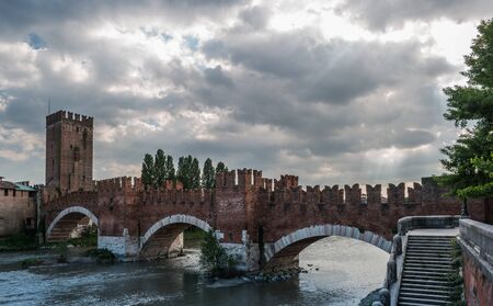 Medieval bridge of Ponte Scaligero in Verona, Italy, built in 14th century