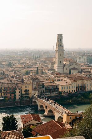 Beautiful panoramic aerial city view of the traditional old architecture of Verona in Italy.