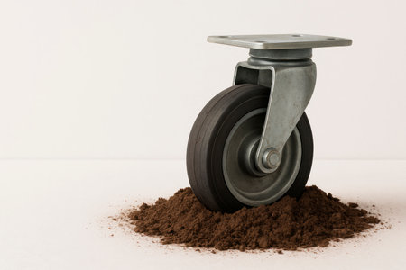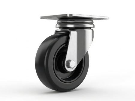 A robust swivel caster featuring a durable rubber wheel and a sturdy metal plate for secure attachment.