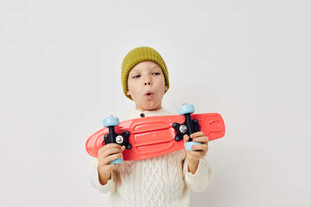 Cruiser board on a classic blue background. youth entertainment. top view.