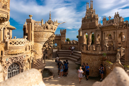 Benalmadena, Spain - September 7th, 2023: Tourists in Castillo Monumento Colomares, a castle, dedicated to the life and adventures of Christopher Columbus.