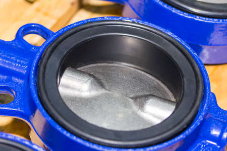 close up detail inside of butterfly valve for industrial