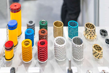 various equipment part such as spring oilless or oil free bush cylinder stroke end block set ball retainers of mold or metal stamping die system for industrial on table
