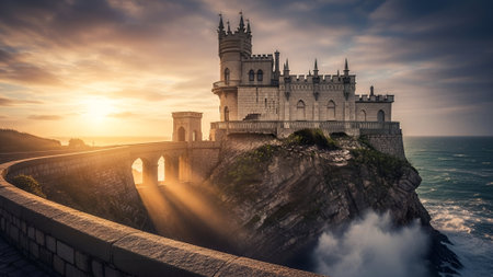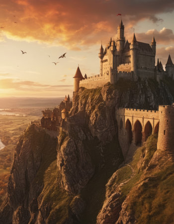 Castle on a Cliff at Sunset