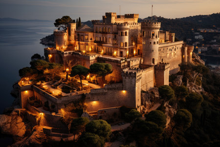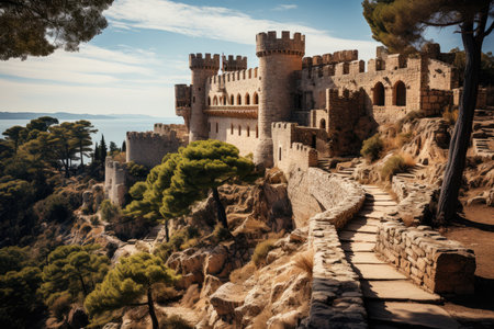 Majestic Medieval Castle in Majorca with stunning views, generative AI