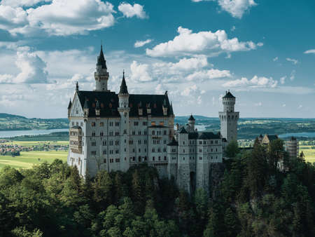 Majestic Neuschwanstein Castle in Germany with space for text.