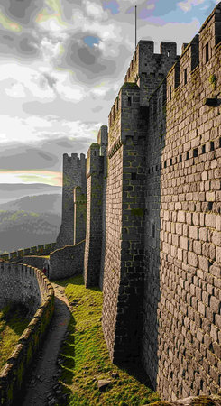 Majestic castle on rocky hill with turrets and winding path