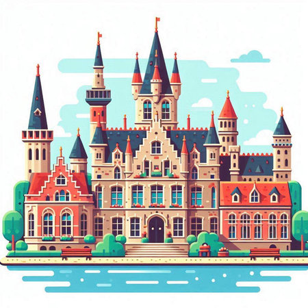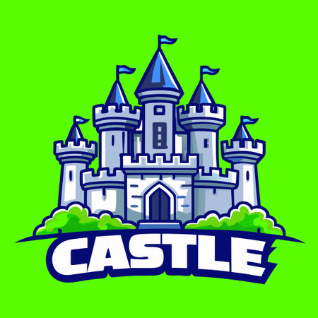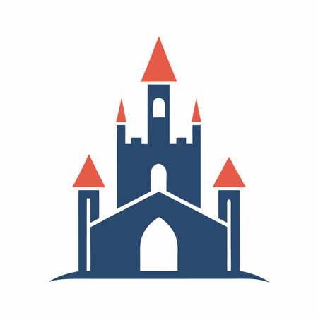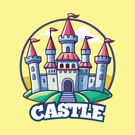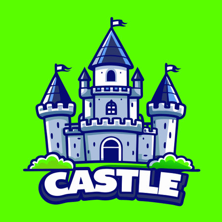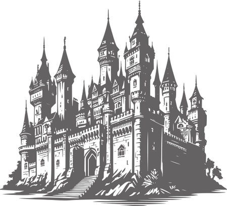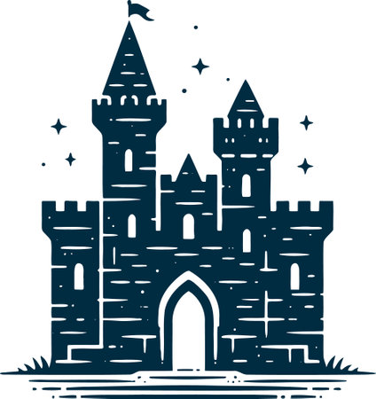 Majestic Castle Silhouette in Cartoon Style with Line Art and Vector Graphics