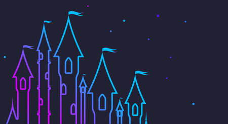 Magic multi-towered palace of the princess surrounded by the starry sky. Fairytale castle. Flat vector illustration isolated on night blue background.