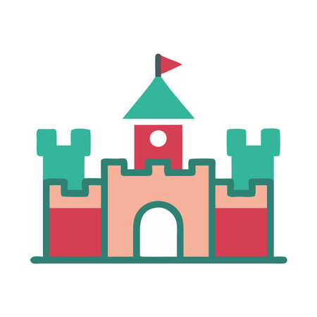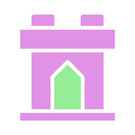 A graphic pink castle icon with a green doorway, suitable for graphic design projects.