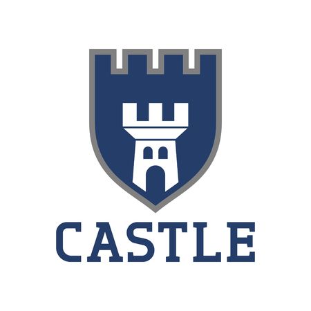 Blue Castle Logo Design with Line Style. Fortress Tower Logo or Icon