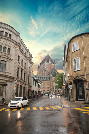 Canada Quebec City Sunset Chateau Frontenac most famous tourist attraction UNESCO World Heritage Site