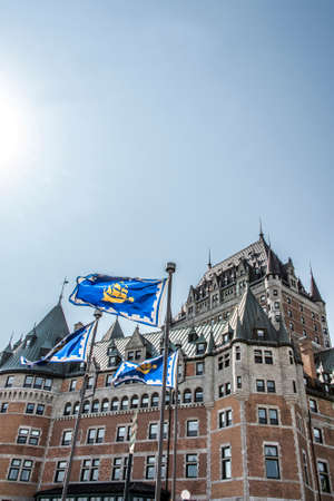 Canada Quebec City 13.09.2017 - Chateau Frontenac UNESCO World Heritage Site flag below