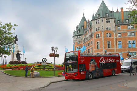 Quebec City, Canada - Sept. 14, 2016: Sightseeing bus parked in the historic part of Quebec City in Canada