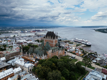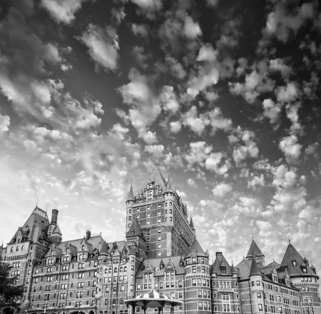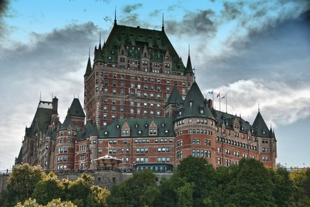 Quebec City, Canada - August 6, 2015:View of the famouse Frontenac castle in Quebec City during a cloudy morning.