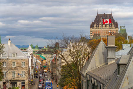 Quebec, Canada-October 20 2021: Quebec City Old Town street view in autumn season.