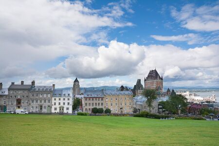 Quebec City cityscape panorama with cloud, blue sky and historical buildings.