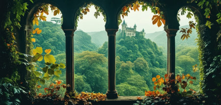 An Old Castle Surrounded by Dense Vegetation, Old-world castle setting for a medieval-themed wedding, AI Generated