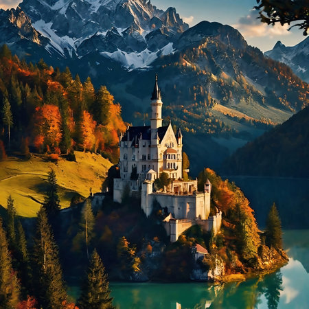 Fairytale Neuschwanstein Castle Iconic German Landmark in Autumn Splendor, Bavaria, Germany