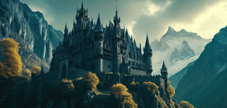 Beautiful medieval castle in the mountains. Fantasy landscape with fantasy castles