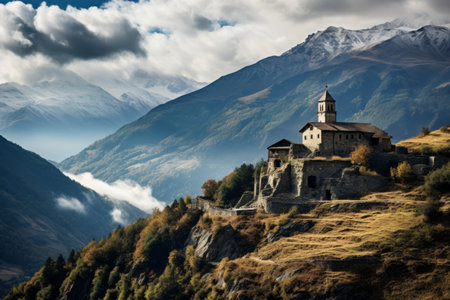 Majestic Serenity: A Breathtaking Church Tucked Amidst Mountain Peaks
