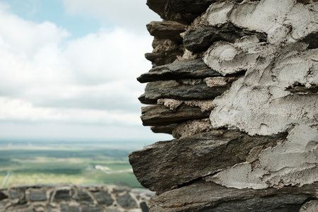 Close-up detail of old stone and plaster masonry wall in Vrsac Fortress, Serbia