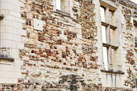 ANGERS, FRANCE - JULY 28, 2014: old stone wall in Angers Castle, France. Chateau d'Angers was founded in the 9th century by Counts of Anjou, was expanded to current size in 13th century