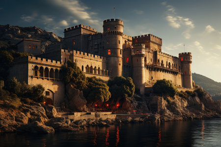 Majestic Medieval Castle in Majorca with stunning views, generative AI