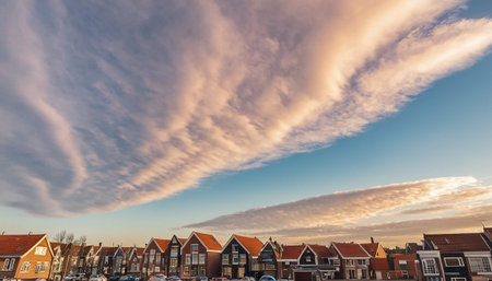 Clouds over houses in Zaanse Schans, Netherlands.