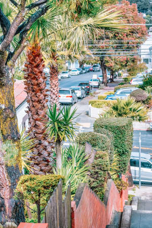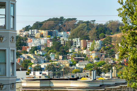 Uphill residential buildings with trees outdoor at San Francisco, California