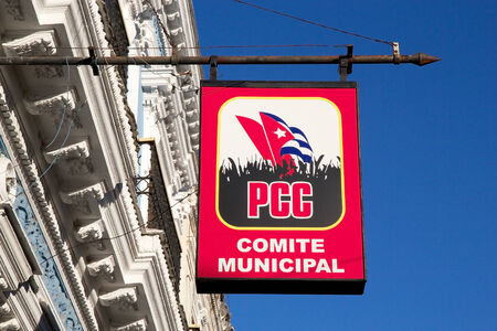 Comunist Party of Cuba logo at the headquarter of the Cienfuegos town, Cuba