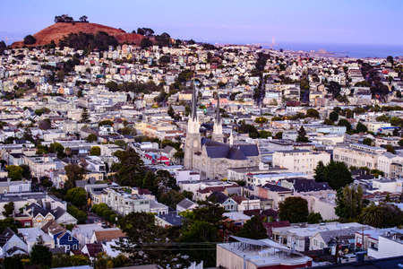 Panoramic view of the San Francisco city from the hill Twin Peaks.