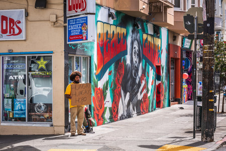 Hungry hobo in San Francisco. San Francisco, USA - September 14 2018.
