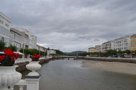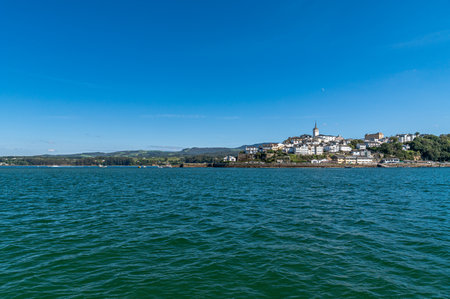 RIBADEO, SPAIN - SEPTEMBER 3, 2022: View of the town of Ribadeo (Lugo province, Galicia), from the Asturian side of the Eo estuary, northern Spain