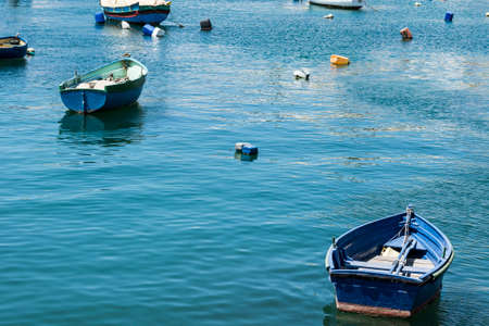 Anchored boats on Carril fishing harbor in Vilgarcia de Arousa town