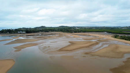 Mackay, Queensland, Australia - July 2021: A tidal creek at low tide with the water completely receded, Bucasia Beach
